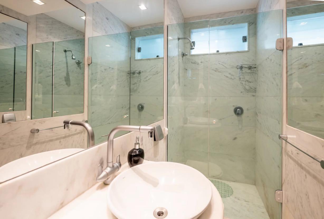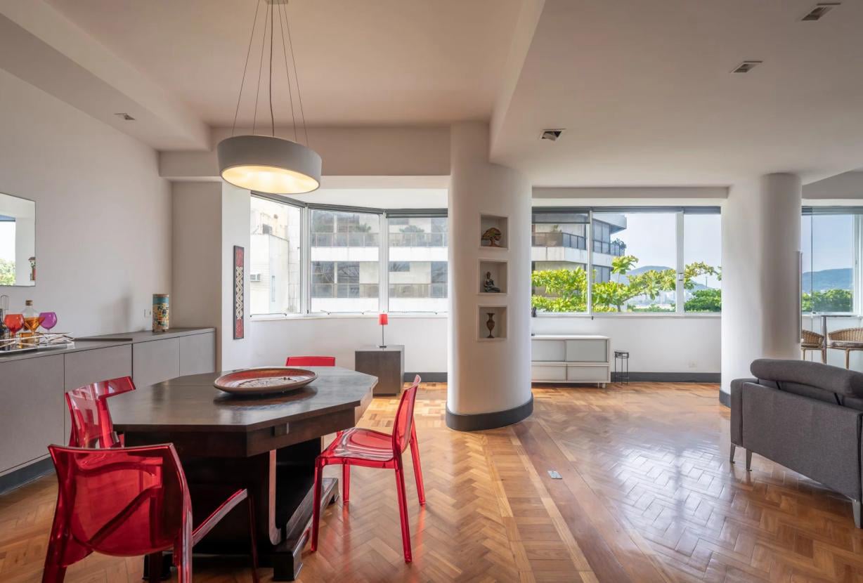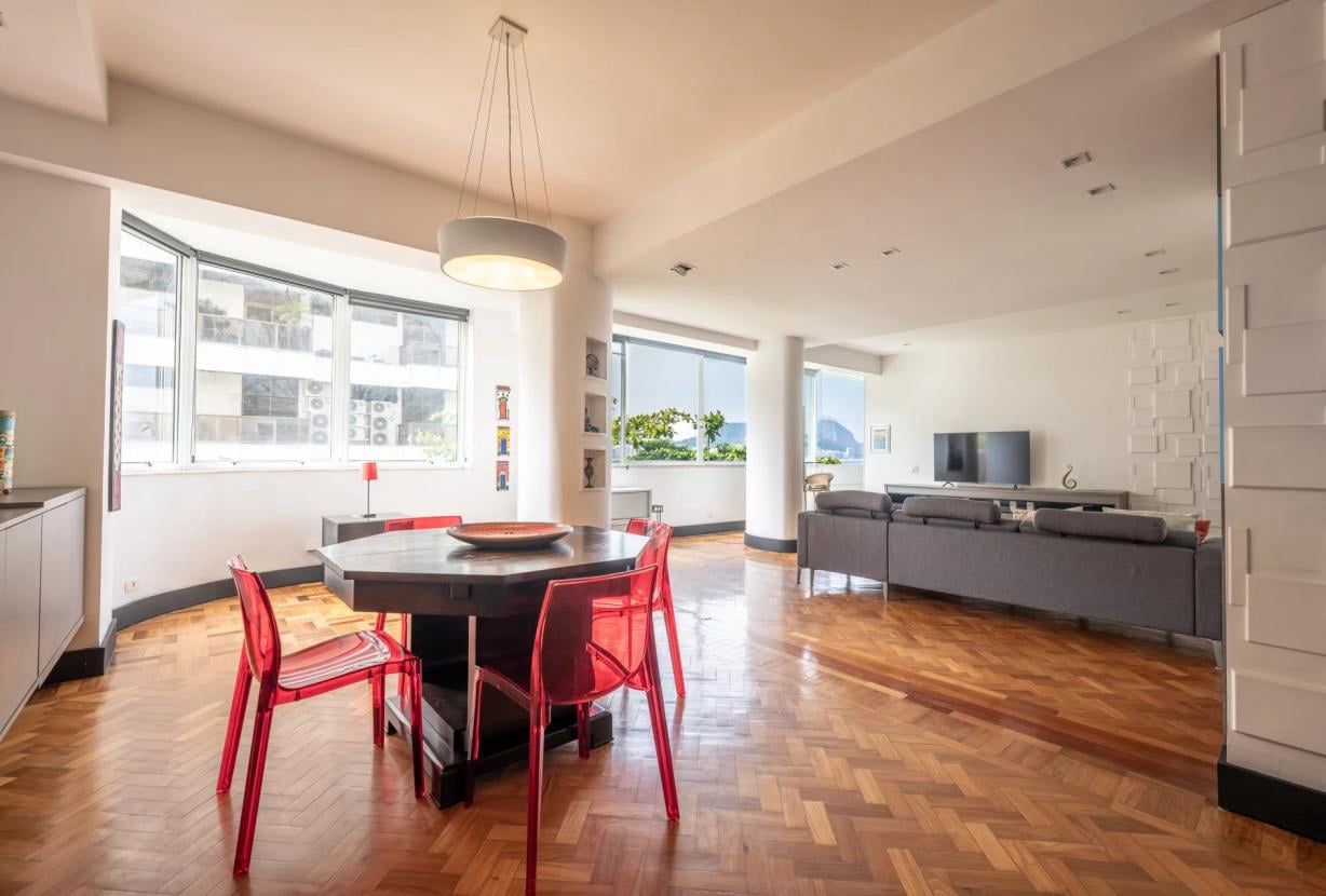 Localizado na Rua Joaquim Nabuco, na prestigiada esquina da Avenida Atlântica, em Copacabana, este apartamento de 2 quartos e 2 banheiros fica no 5ᵉ andar de um edifício que permite o arrendamento sazonal.