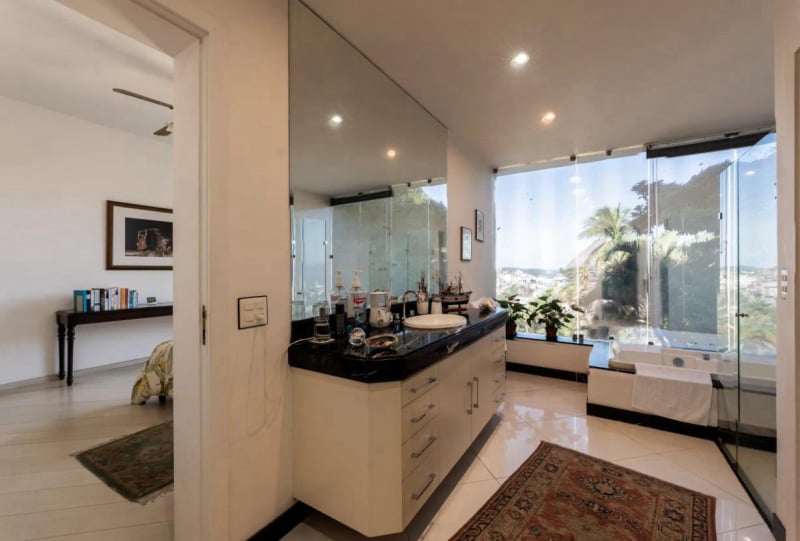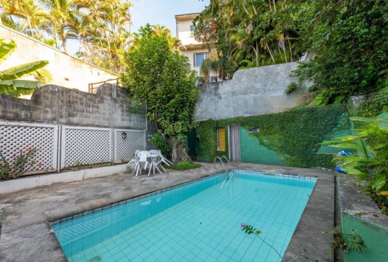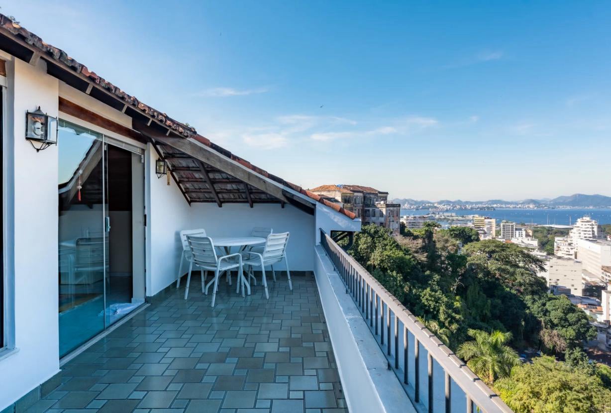 Charmosa casa em Santa Teresa, oferecendo uma vista panorâmica deslumbrante do Rio de Janeiro com amplos terraços ensolarados.